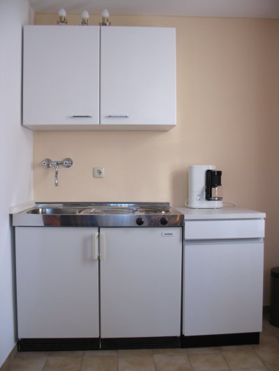 Schön eingerichtete Ferienstudios mit Kochzeile, Kühlschrank, Dusche, WC und TV für 2 Personen. Ausstattung mit Schlafcouch für weitere Schlafgelegenheiten.